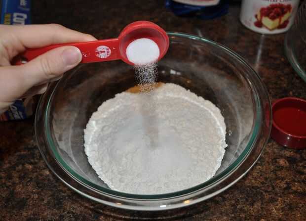 Primer paso para este pastel perfecto corteza es mezclar los ingredientes secos.