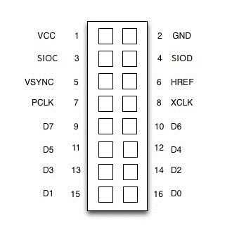 El módulo de la cámara viene con un encabezado de 9 x 2, el diagrama de pines y el significado de estos pernos se muestran en las fotos.
