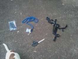 Llevar perro - el plomo debe hacerse de una cuerda gruesa y redonda para evitar el frotamiento contra el perro. (Puede ser recogido en una tienda barata de aproximadamente $5)