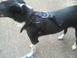 Después de cansarse del final de la correa siempre resbalando por todo el cuello del perro, causando que con frecuencia se enrede en el la línea de la correa colgando luego a sus pies, fui buscando alternativas. Vi un arnés de la respuesta y vi uno q