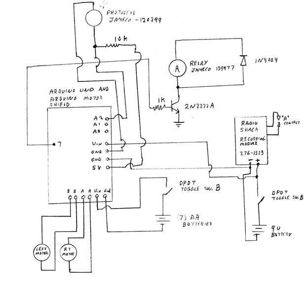 En el concepto, esto es bastante simple. Levante la etiqueta y la luz incide en una fotocélula, desencadenando la acción. El módulo de sonido juega un pregrabado "chirriaba" y el paquete retrocede, gira y se quita. El escudo de Arduino Motor supervisa actual va a los motores. Cuando el paquete golpea un objeto, uno o ambos motores luchan para operar y dibujar un aumento en la cantidad de corriente. El aumento actual permite el Arduino saber jugar "Chirriaba", entonces, gire y saque. Esto continúa hasta que el interruptor principal está apagado.