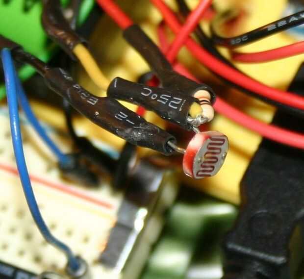 La fotocélula, resistencia, montaje de plomo de soldadura juntos.
