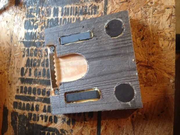 Pegar los imanes en las ranuras, probablemente puede usar epoxi u otro tipo de pegamento, sólo utilicé pegamento para madera