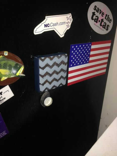 Para mí, tenía que probar si el destapador / colgador de pared funcionaría y lo hace. También he probado a ver si los 4 imanes usé sería lo suficientemente fuertes para sostener la montaña en el refrigerador y lo hizo.