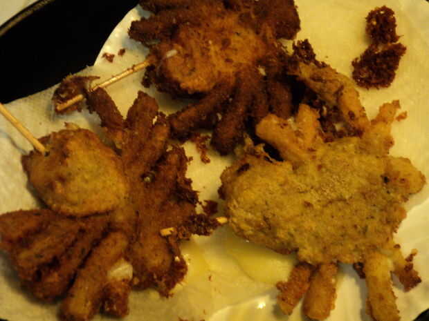 Tratar de drenar la mayoría del aceite de la tarántula frita mientras esté todavía caliente en o cerca de la olla. Si se sitúa sobre toallas de papel, el queso fundido puede en principio a exudar hacia fuera todo. Se pegará.
