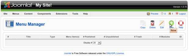 -Por último, debemos ad el menú de nuestra página como un módulo. Así que vaya a > módulos > (nuevo) > [MENU] y seleccione el menú que acaba de crear. Darle un título y asegúrese de guardar su habilitado y éxito.