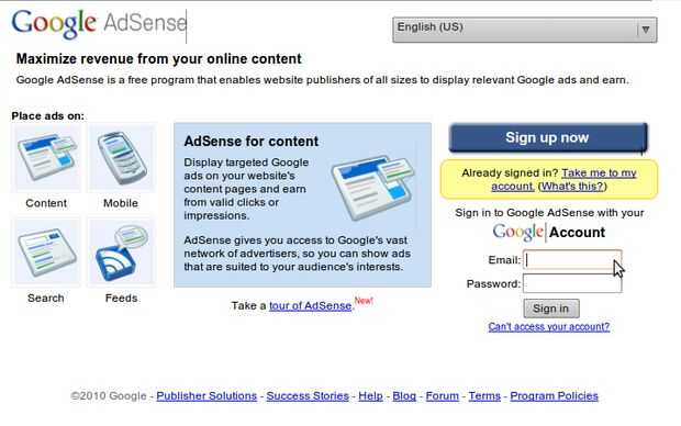 -Google Adsense - Google es la publicidad. Controlan alrededor del 70% (estadística de 2008) del mercado publicitario de Internet. Su bastante fácil de usar y puede conectarse a él a través de su cuenta de google existente.