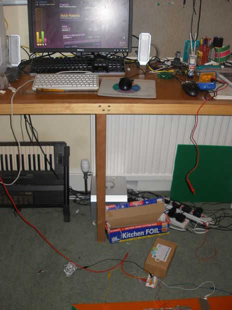 Este dispositivo se seque zapatillas soplando suavemente calentado el aire a través de ellos. El aire es bombeado en una caja de maquillaje vintage y calentado por una bombilla de 60 vatios. Entonces entra en un tubo de hierro bifurcado y es expulsad