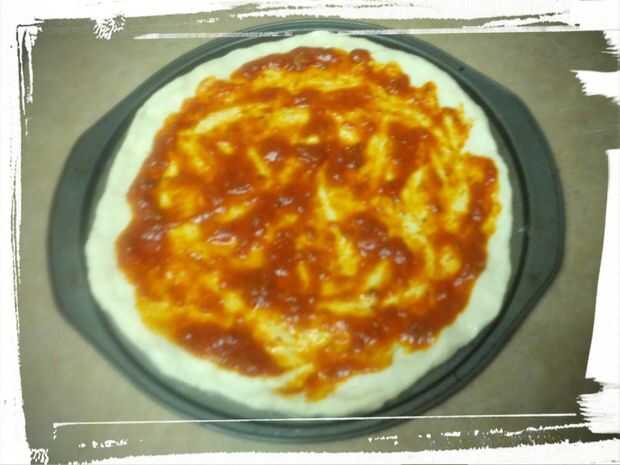 Extensión 1/2 c. de salsa de tomate (salsa para pasta es fina) sobre la masa.
