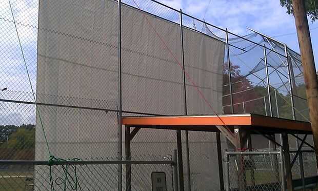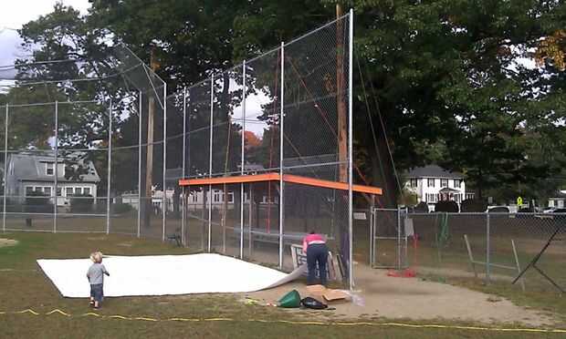 Colgamos la pantalla de un bar que alzaron para arriba al lado de una reja.