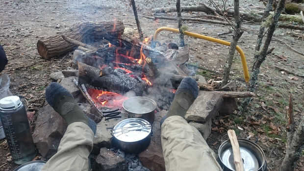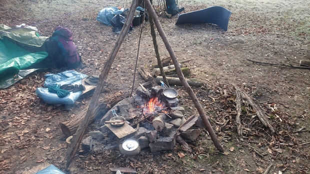 Fogata debe hacerse fuera del equipo o la vegetación (especialmente de arbustos y árboles) alcanzar. No empezar a fuego bajo los árboles. Tome especial precoz en el camping cerca de bosque de Picea o abeto. Sus raíces están cerca de la superficie y difundir lejos del árbol y pueden fácilmente comenzar a arder y estalló en llamas metros (compruebe esto especialmente cuando el tiempo seco o las condiciones de sequía ocurren).