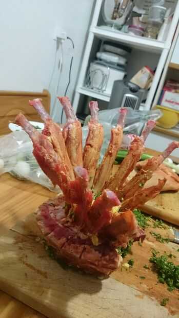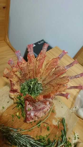 en mi primera parte, hice el cuarto de cordero asado de corona y pierna de cordero.