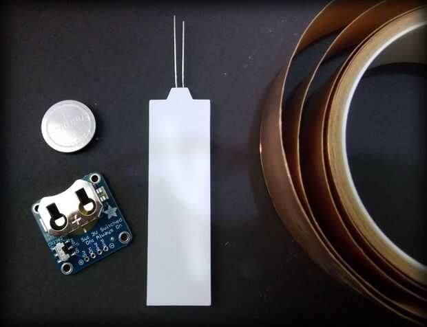 - Cinta de cobre - utilicé unos 1.25" amplia cinta de cobre. Se vende como una barrera de "la babosa" en ferreterías. Tiendas de artesanía con productos similares. La cinta tiene un adhesivo con un papel protector, peel-off. (Este tipo no tiene adhesivo conductivo).