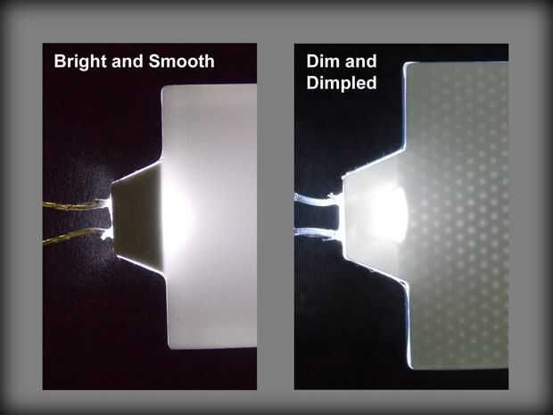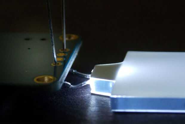 El LED en el panel tiene dos puntas de metal o alambres, sobresale la parte superior.