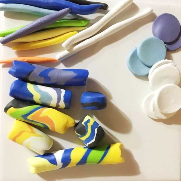 Si no desea ocuparse de hacer los discos, cada uno de sus colores por rollo en pedazos más finos y envuélvalos juntos--luego extruir (vea el paso siguiente para un ejemplo visual).