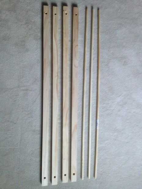 4.) tres 4' largo pasadores de madera 1/2 "de diámetro.