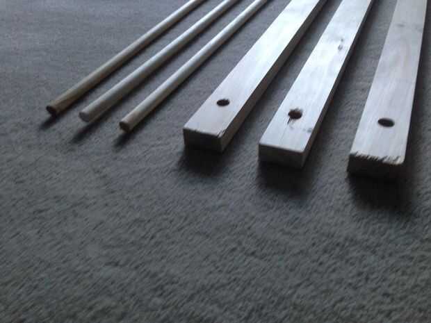 Después de tener la madera cortada en la tienda de hardware, necesita perforar algunos agujeros. En realidad tuve mi madera perforado en mi ferretería local porque mi taladro se rompió, pero esto puede hacerse fácilmente en casa.