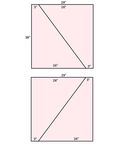 2.) cortar 2 rectángulos 29″ amplia y 38″ largo.