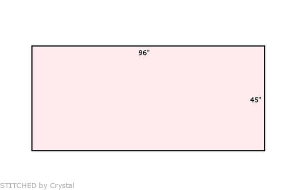 1.) cortar un rectángulo grande 96 pulgadas de largo y 45 pulgadas de ancho. (Si compras la tela que es sólo de 44 pulgadas de ancho, funcionará bien; sólo tiene que utilizar toda la tela de orillo a orillo, que no pierda esa pulgada en su tienda de campaña acabada.