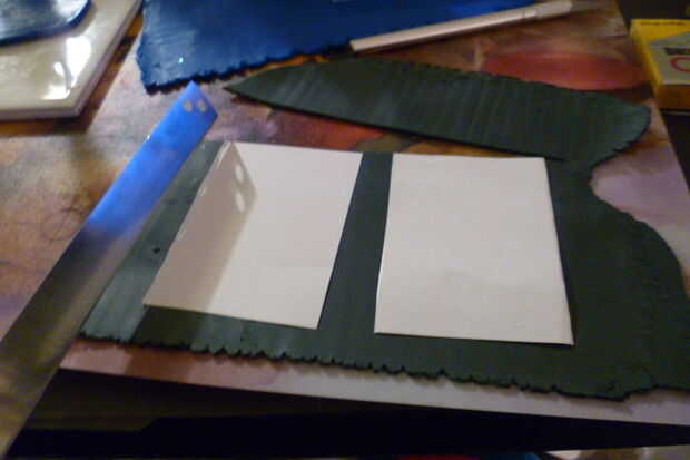 2. la cartulina le brindará estabilidad extra para las paredes para que puede permanecer en posición vertical al mismo tiempo de cocción. Coloque la cartulina y emparedado entre 2 piezas rectangulares de arcilla. Junte los bordes y suavizar todo el camino alrededor. Repita para la 2 º pieza rectangular.