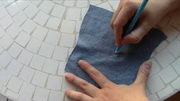 Comience dibujando la forma que desee el bolsillo, dejando un borde de 1cm alrededor de él. No cortar este todavía - es más fácil trabajar en la pieza más grande de la tela. Esboce el diseño básico de la pintura con lápiz de sastre, marcando las características prominente en la imagen.