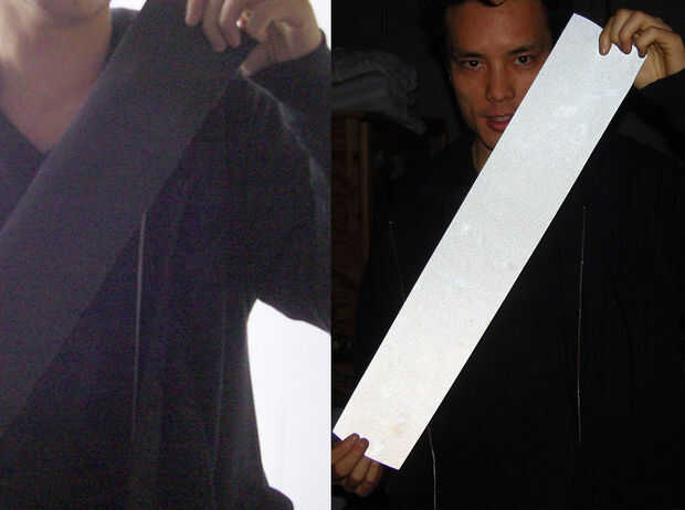 El último tipo de retroreflection funciona la cinta que ves en este instructable. Es un negro pero superficial, con millones de diminutos granos incrustados en él. Cada uno va retroreflect, resultando en un conjunto, superficie de catadióptricos.