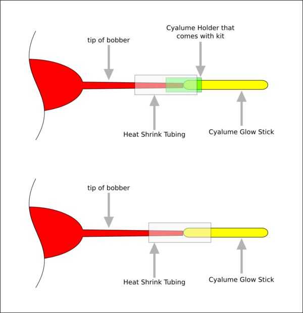Así que modifiqué a mi bobber usando una longitud de calor tubería para mantener el soporte de cyalume en lugar del encogimiento.