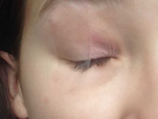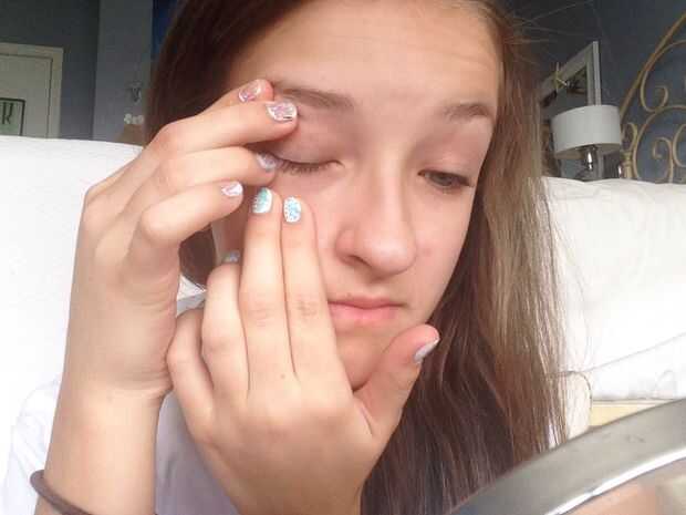 Tomar un pequeño trozo de cinta y ponerla a mitad de camino en el párpado como se muestra.