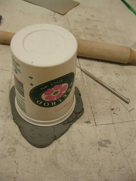 rodillo su arcilla lo suficientemente grande como para caber en la parte superior del envase de yogur grande. corte en la parte superior