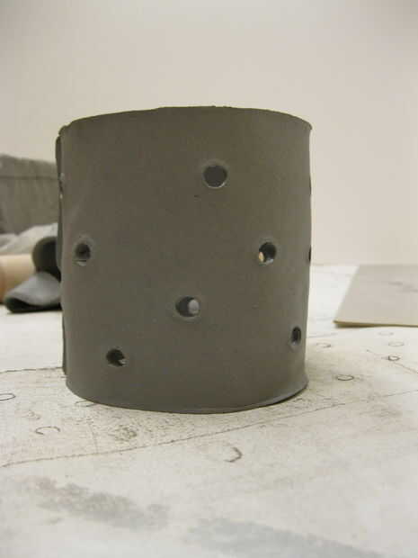 rodillo cuidadosamente la losa de arcilla en un cilindro