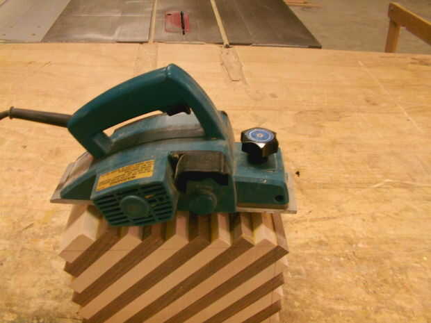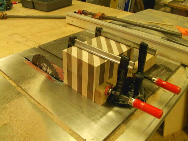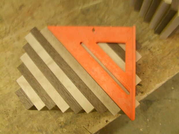 Tomar tus bloques y ponerlos a través del cepillo sobre los extremos planos para limpiar el pegamento. Tomar el cuadrado de su velocidad y alinee el lado de 45 grados a la dirección de la madera. ahora trace una línea en un ángulo de 45 grados a la madera. En todos los lados y debe terminar como foto 2 ahora medida de una de las líneas de lado a los rincones más alto. Desea una esquina en cada extremo a la misma distancia de la línea. Así que puede usar un cepillo de mano para tomar el centro y los lados para obtener la misma medida en los bordes. Ahora utilice la Sierra de mesa para limpiar el otro lado. Poner la parte que hiciste cuadrados contra la guía vio camino al menos la mitad y luego darle la vuelta en el largo camino y hacerlo otra vez para sacar las esquinas totalmente. Ahora puede ejecutar el bloque de tirar el cepillo dos maneras de obtener un cuadrado perfecto. Utilice la Sierra de mesa o tronzadora enorme la cuadratura de los extremos. Es importante que al final es plano cuando se hace.