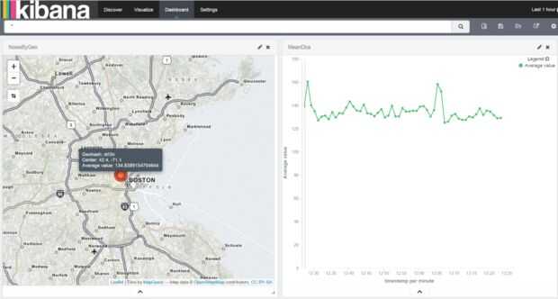 Los datos recogidos se envían a análisis de IoT de Intel para ver y analizar datos de series temporales. Datos también es capturados y enviados a un grupo de Elasticearch con información de la ubicación geo. Esto permite a los individuos a capturar la información de la contaminación acústica a través del día.
