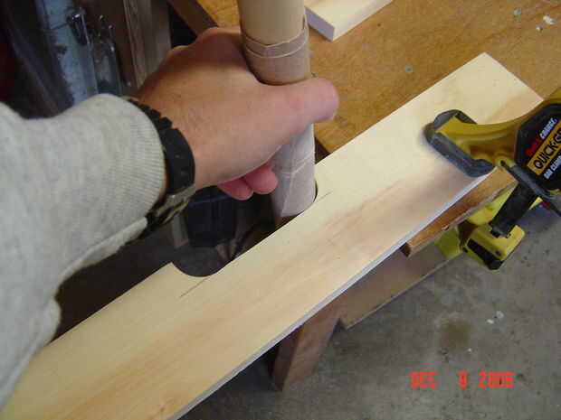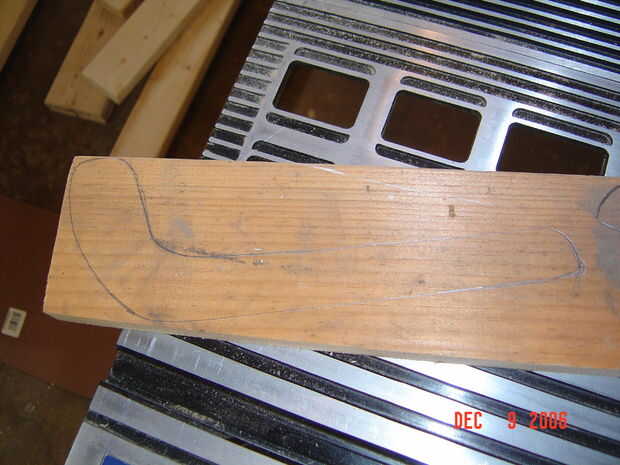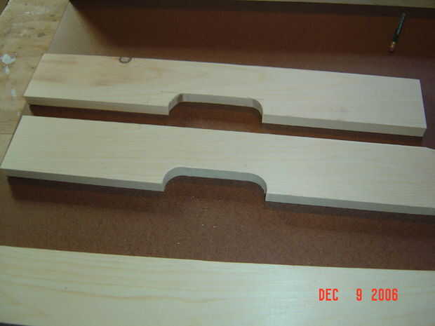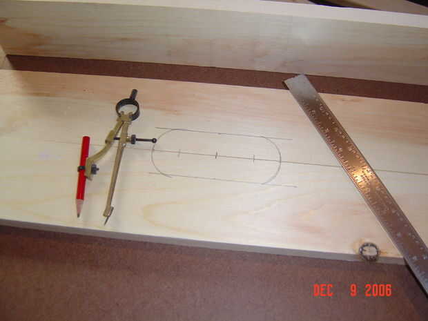 Nota en las fotos que los dos extremos se ponen espalda con espalda para marcarlos para el corte. En primer lugar, he marcado más de dos discos de diámetro de 3/4 de pulgada círculos. Entonces había conectado con las líneas y luego utilizar una sierra de calar para recortar la meta. Esto permite 3/8 de pulgada para el disco se deslice en la meta.