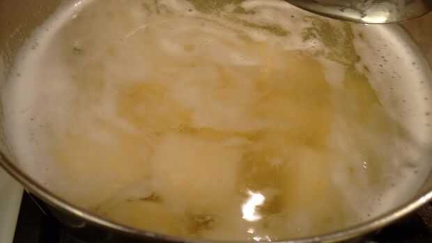 En agua suficiente para cubrir tus papas, hervir sobre fuego medio alto hasta horquilla blanda o suave. (Su llamada - nos como unos bultos en el nuestro, así que no dejes que nuestros papas van demasiado blanda)