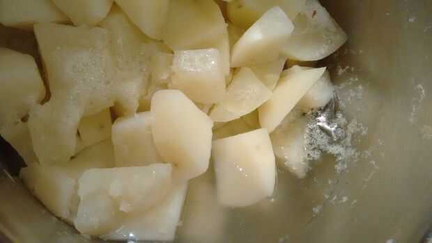 Usted necesitará lo siguiente:PatatasCepillo de patataFregaderoAgua potableCuchilloBoteSuperficie de cocciónTazón de fuenteFiltroTrituradora de manoSalMantequillaCremaPaso 1: Seleccione (1) papa mediana por persona.Paso 2: Pelar cada patata, cortar l