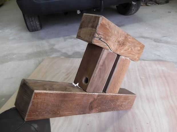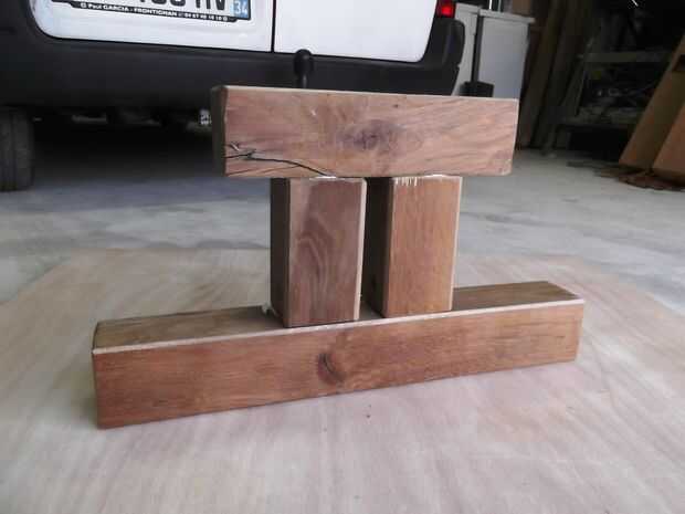 Construido de un tronco de roble, 3 pulgadas de espesor.