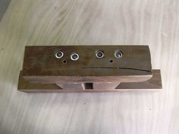 Nota el agujero perforado en el lado. Esto va a servir el perno de acero que sostenga el brazo ajustable en su lugar.