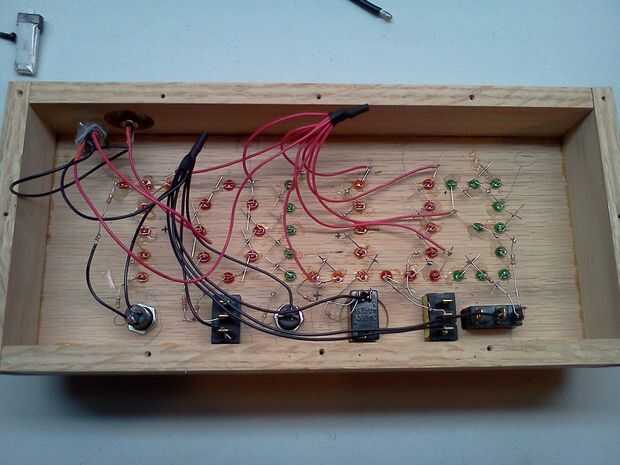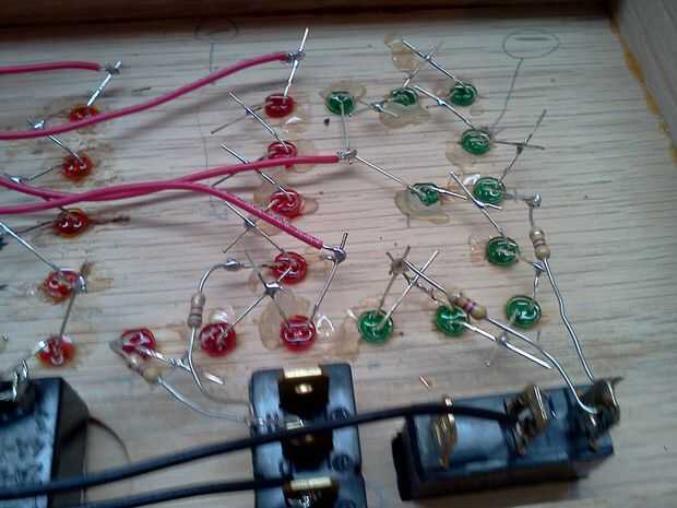 Antes de instalar los LEDs, había revisado cada segmento para los LEDs estaban trabajando. Los agujeros perforados en la parte frontal deben aceptar una LED de 5mm. Usé un poco de pegamento en el lado de cada uno para mantener en su lugar.