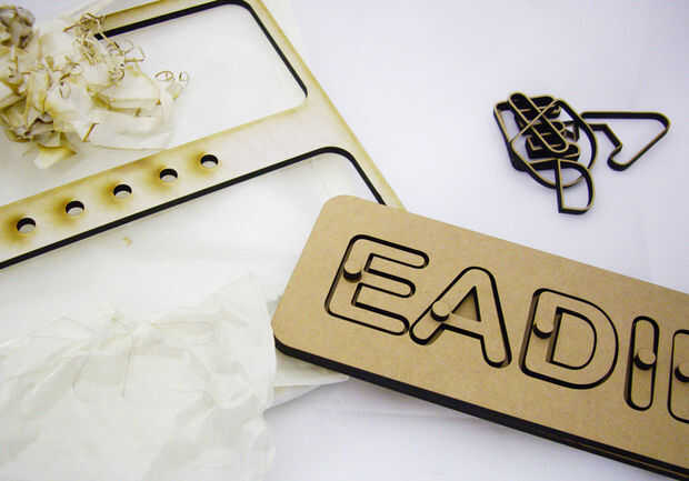 Ahora usted está listo para montaje su rompecabezas de nombre. He utilizado un pegamento diseñado específicamente para el MDF (tablero de fibra de densidad media) pero cualquier pegamento de madera hará (por ejemplo PVA). I inicialmente laminado la sección exterior del bloque a la base, alineando con cuidado y garantizar que la sección de grabado en el exterior. Al mismo tiempo puede Coloque las perillas a las letras, usando la zona grabada para alinear las perillas.