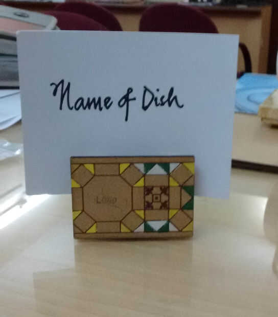 Eso es todo... Utilice sus dedos para presionar el MDF y abrir los clips, coloque la etiqueta de nombre entre. Los clips sostenga, en su lugar, el papel que usted puede imprimir o mano escribe los nombres de cada plato. Allí! Tiene un titular del nombre de plato buffet personalizado barato.