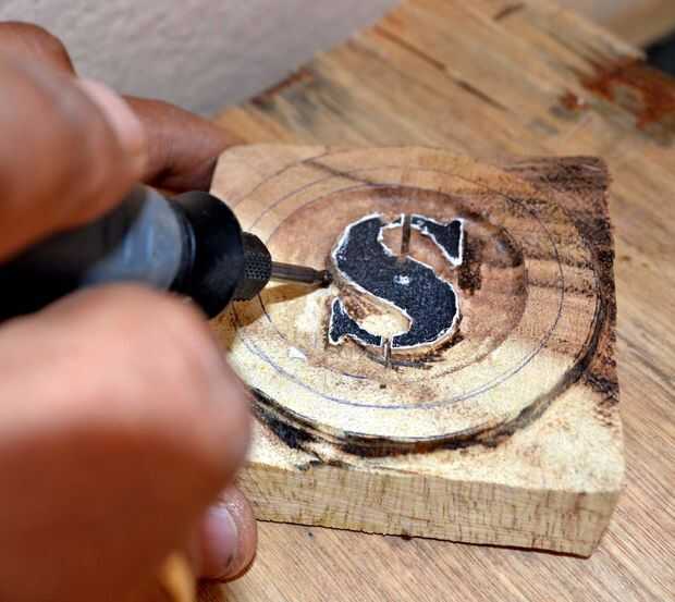 Disco de corte de uso para cortar en los bordes rectos del personaje, el resto de la talla se realiza con la fresa de tallado y grabado. Quite toda la madera no deseada de la pieza de madera. Herramienta Dremel 3000, que he utilizado, es compatible con múltiples velocidades. Utilice velocidades bajas donde se requiere precisión. Asegúrese de seguir los requisitos de seguridad durante el uso de cualquier herramienta.
