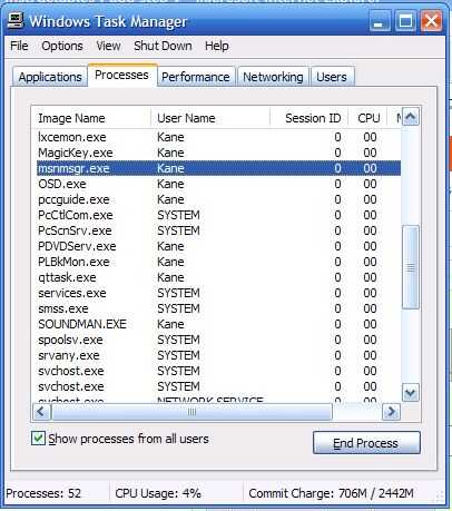 Volvemos en el administrador de tareas y en procesos buscamos 'msnmsgr.exe' pueden ser pocos pero sólo Finalizar tarea otra vez confirmar que queremos dejar funcionando y luego volvemos a nuestra carpeta IM-svr.