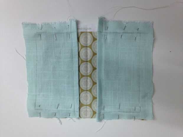 Estas son las bolsas que en el interior de la cartera cuando se despliegan. El primer paso de coserles es dobladillar la parte que quedará abierta, como se muestra en la foto de arriba. Para facilitar este, aconsejaría a planchar el doblez del dobladillo, en lugar de clavos porque esto es mucho menos complicaciones y es más rápido.