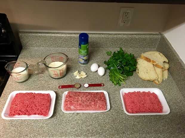 albóndigas de pavo con una sorpresa dentro.Paso 1: Carne de temporada Combinar lo siguiente:Ingredientespavo molido de 2 librasc 1/2 pan rallado (seco los enlatados)2 huevosunos dientes de ajo rallado (al gusto; Utilicé unos 8 dientes grandes)1 cucha