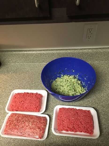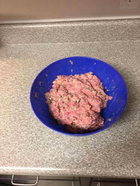 Añadir la carne molida en el Bol. Con las manos o con cualquier utensilio mezcla de elección, mezclar todos los ingredientes para que la mezcla de huevo solo se incorpora en la carne.