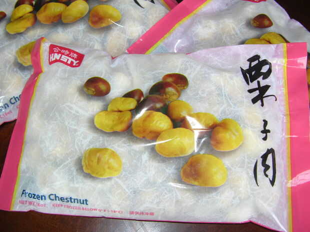 Añadir las castañas riced al centro. Asegúrese de que se les ha dado suficiente tiempo para enfriar y escurrir.