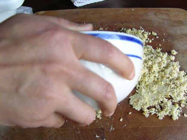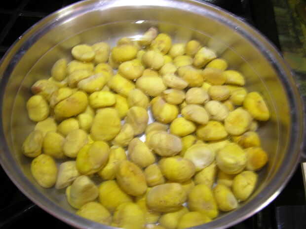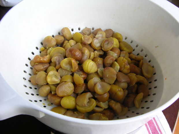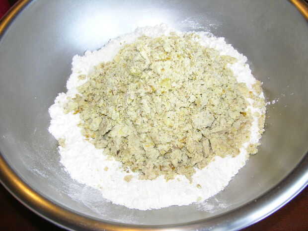 Poco a poco la mezcla sólo puede absorber el castaño de la harina. Puede que no necesite de la harina. O añadir agua si es necesario.
