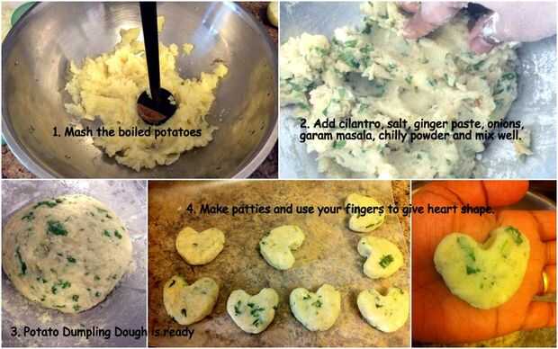 Ñoquis de corazón picante al curry, cocido al vapor arroz Basmati, ensalada y sorbete de aguacate Romero - vegetariana fecha cena (1 / 5 paso)
