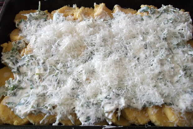 • superior los ñoquis con la salsa añadimos más queso rallado arriba antes de hornear.