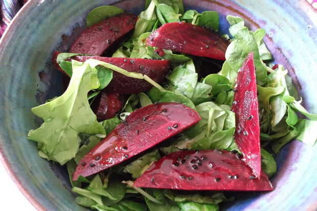 Serví con una ensalada de hoja y remolacha dulce, súper verde.